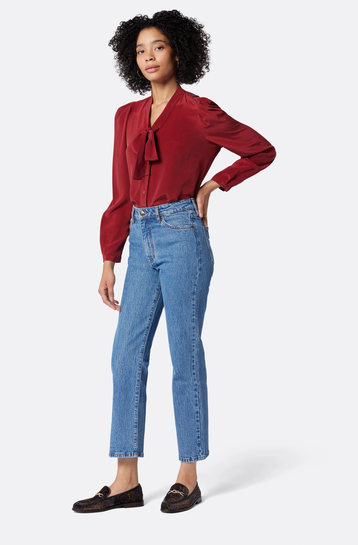 The everyday shirt, elevated, The Eldridge is a showstopper with its relaxed silhouette, necktie, and gathering details around the shoulder.