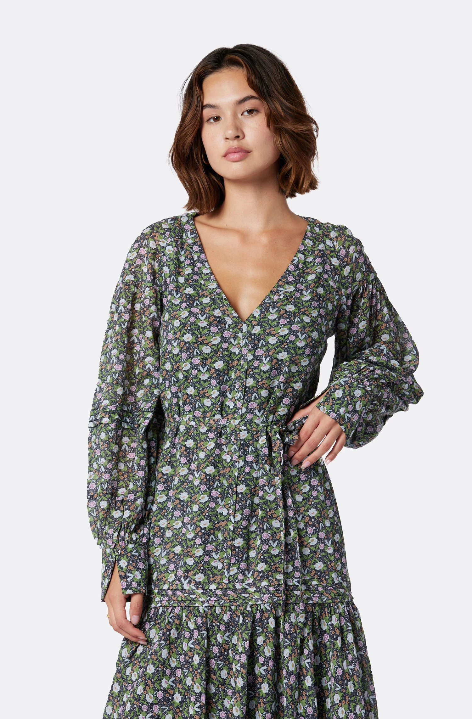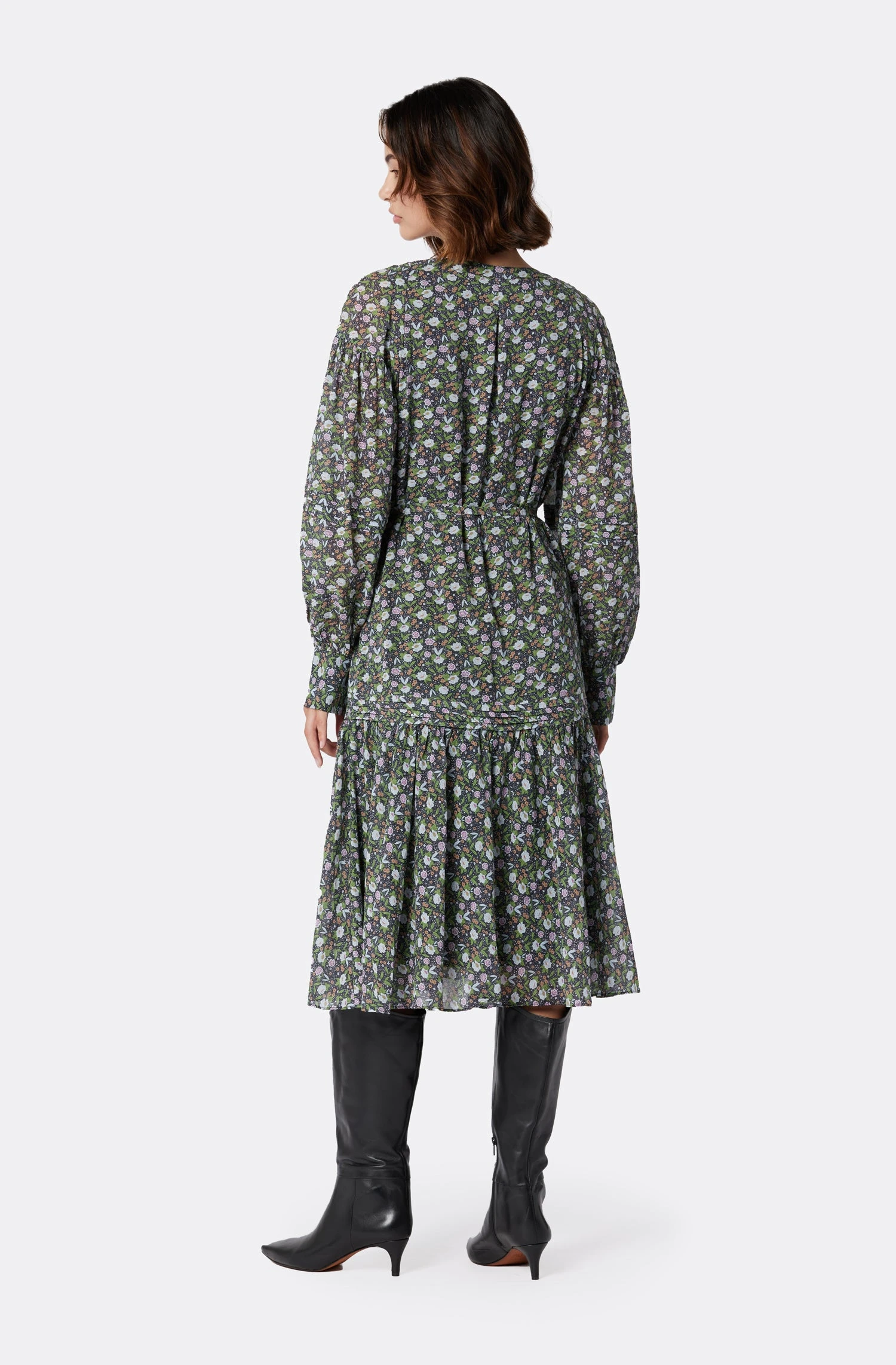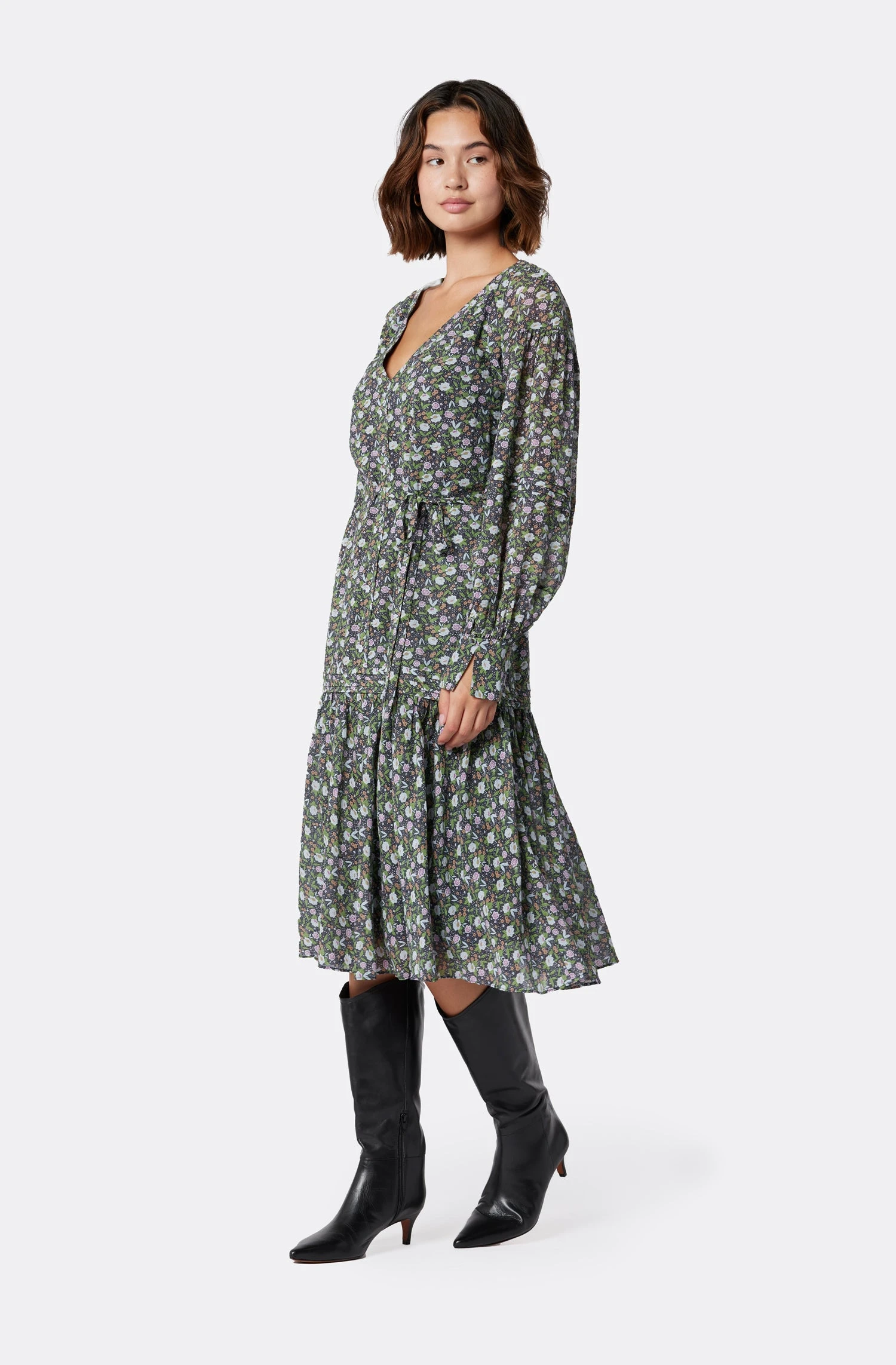 The Gabriella is this season’s easy tiered dress, with a twist, thanks to the black trim that brings out the neckline. This dress flows seamlessly and looks great with boots and a denim jacket.
