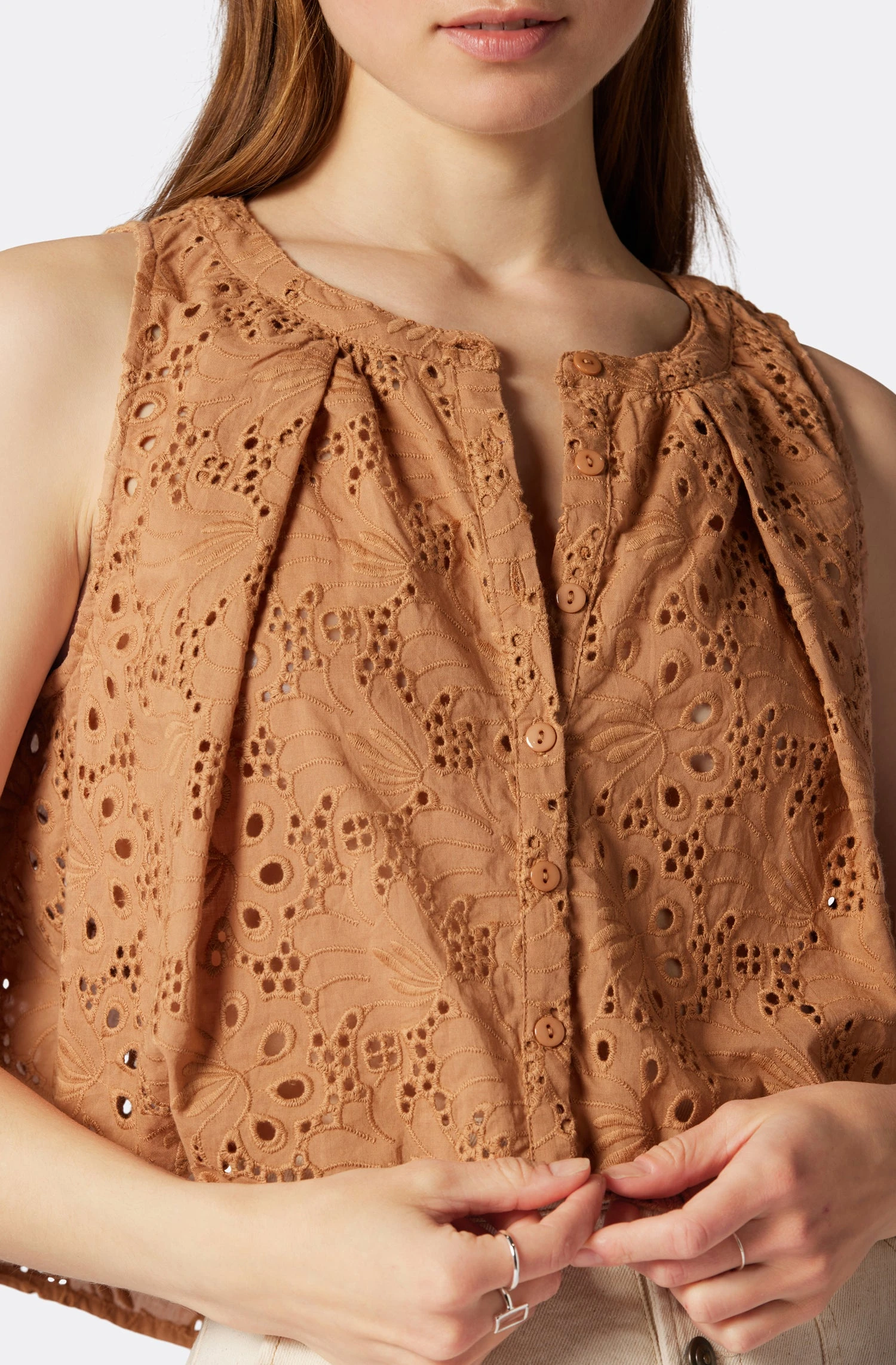 The Gemma is that soft cotton eyelet spring top that just makes sense. A Slight high-low hem with no sleeves, wear this design with your favorite jeans and call it a day. Pair it with the Lawren short for a complete eyelet set.