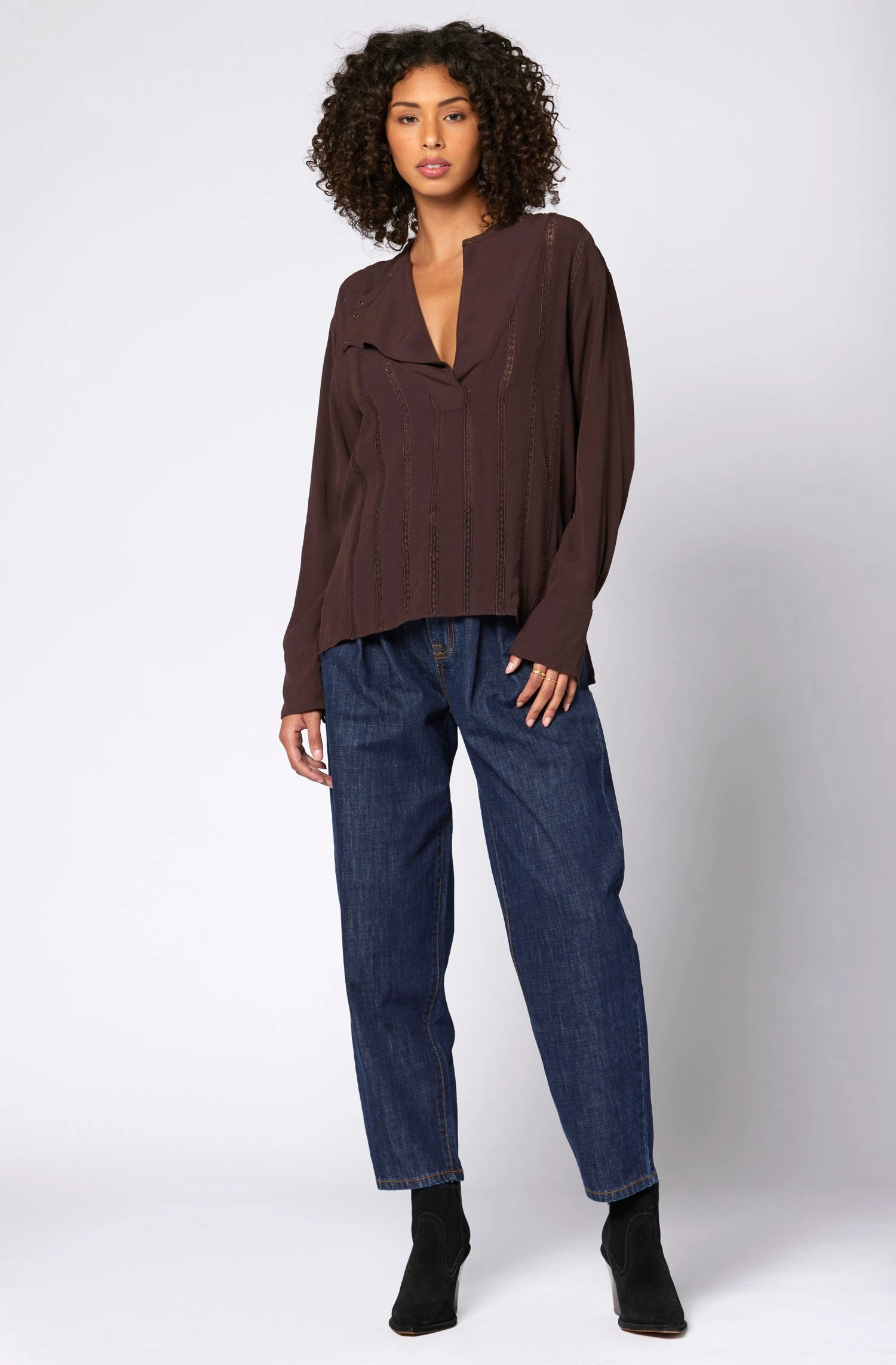 The more you look at The Gravity, the more you fall for it. This romantic top features lace trimmings and has a special collar that adds movement to the flowing silhouette.