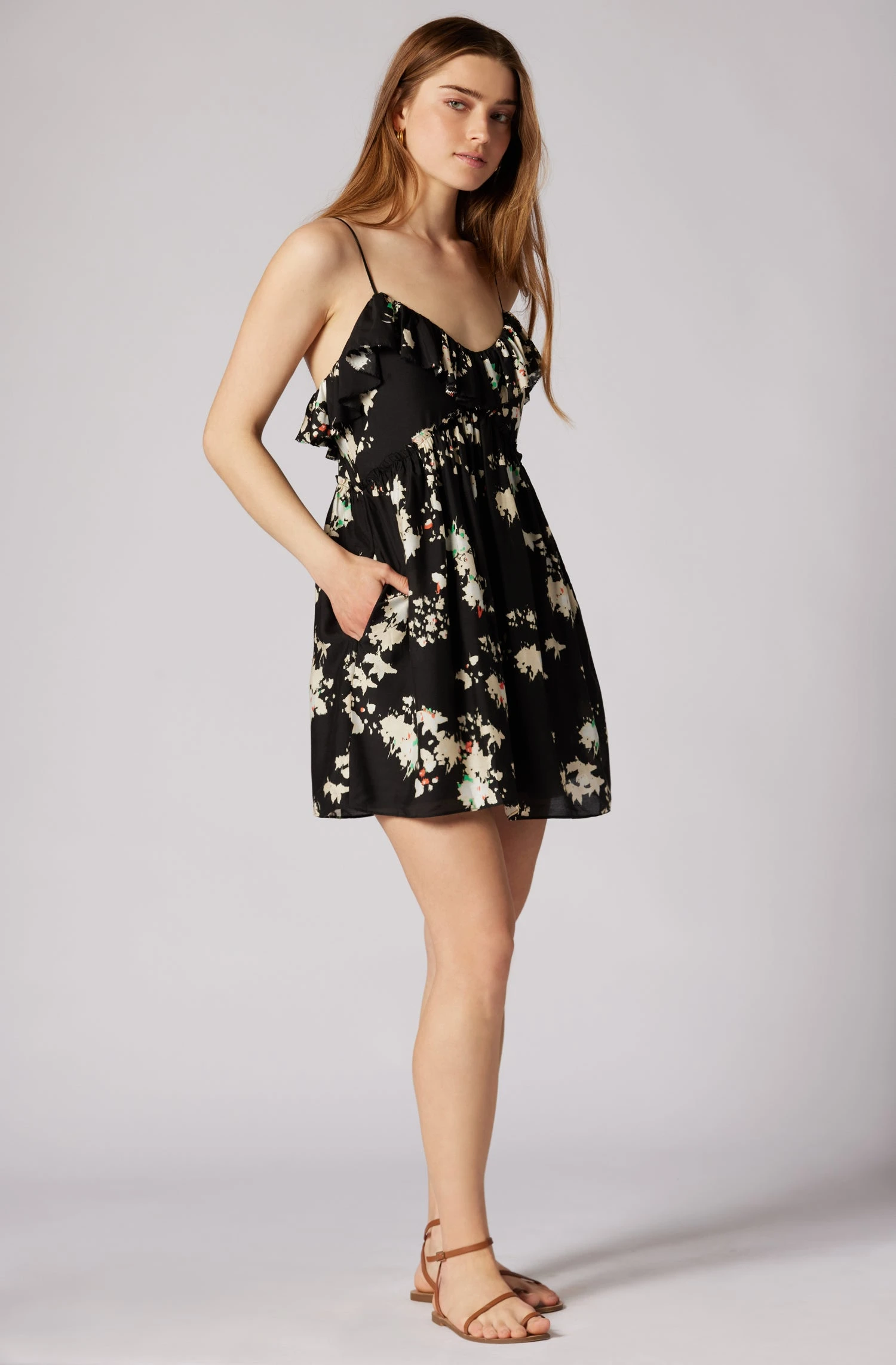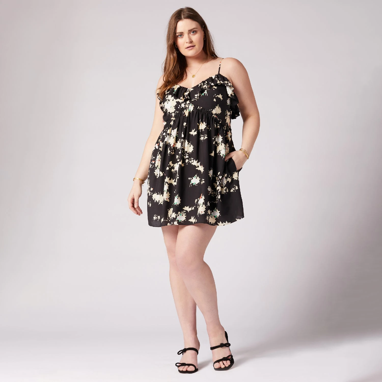 Thin straps, flowing silhouette, and just the right amount of ruffles; The Lilli moves like a summer breeze. This silk satin design can be worn with sneakers and a light denim jacket or dressed up with heels and the right accessories.