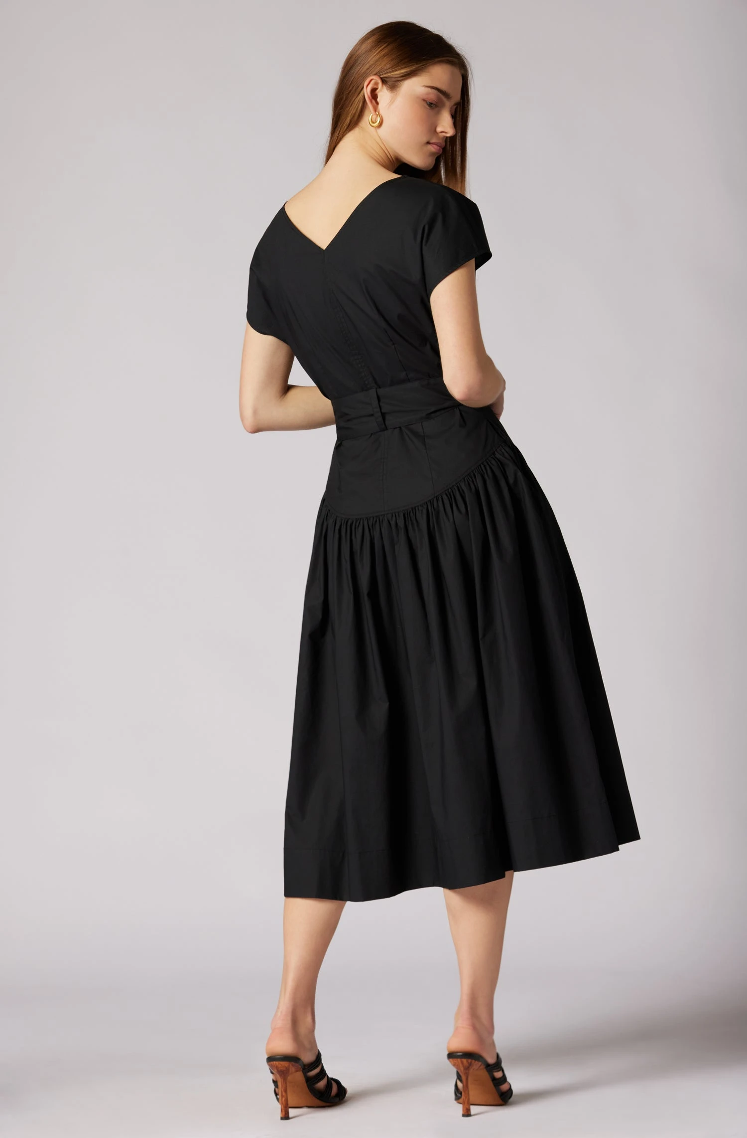 The Preanka is a chic summer dress with a full skirt, tie belt to accentuate the shape, and a V-neckline. This cotton poplin design will elevate your wardrobe instantly.