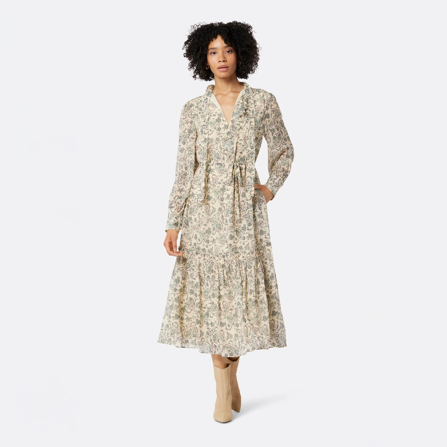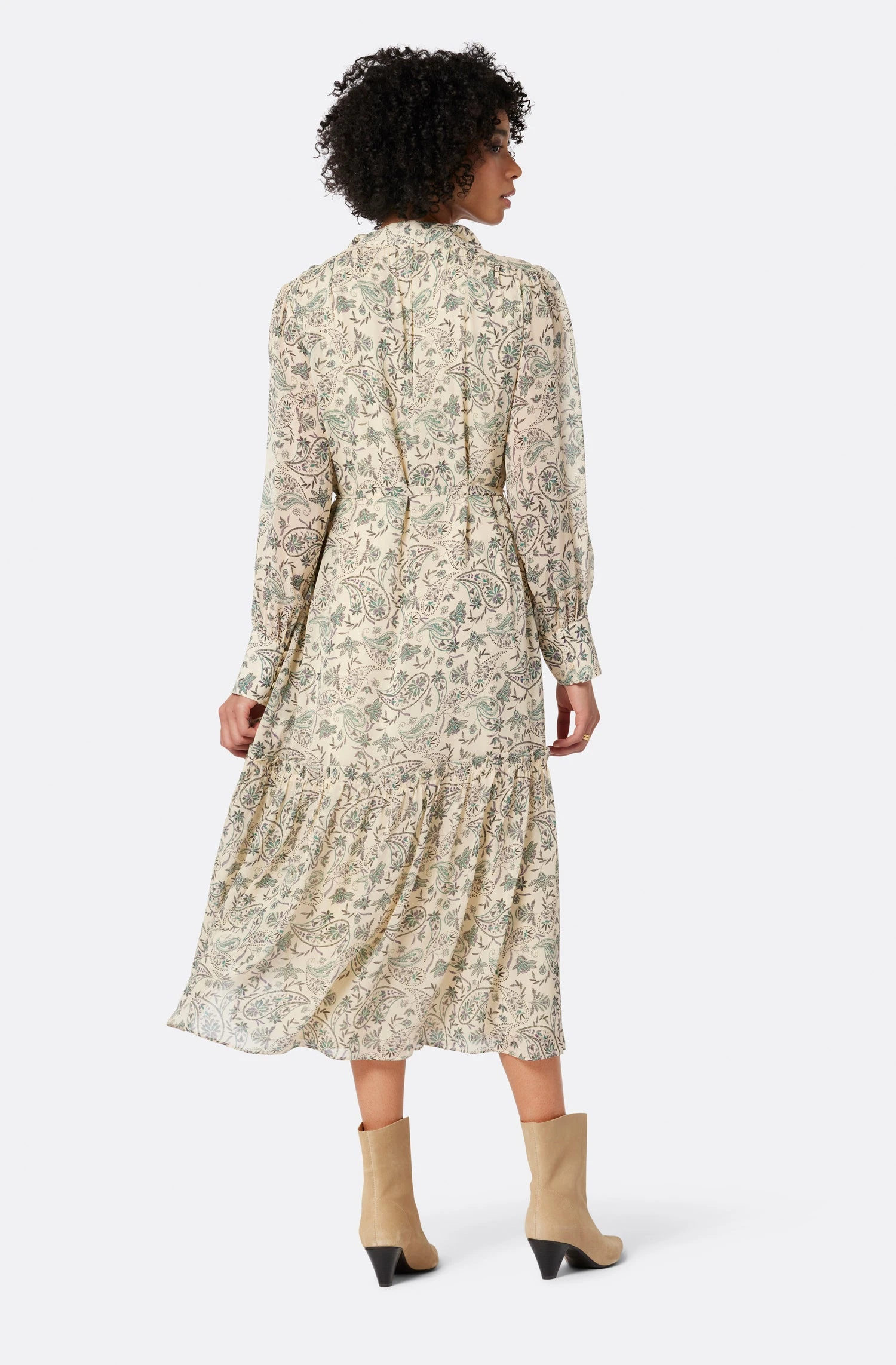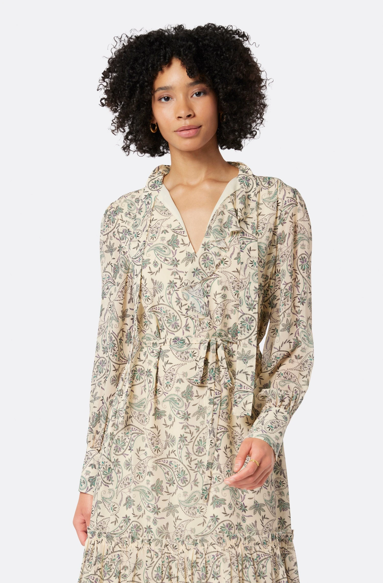 The Roussel evokes vintage Parisian dreams thanks to its romantic shape and delicate details. This flowing silk dress features a self-tie belt, necktie around the collar with ruffle detail, voluminous sleeves, and an overall whimsical appeal that will switch your style around.