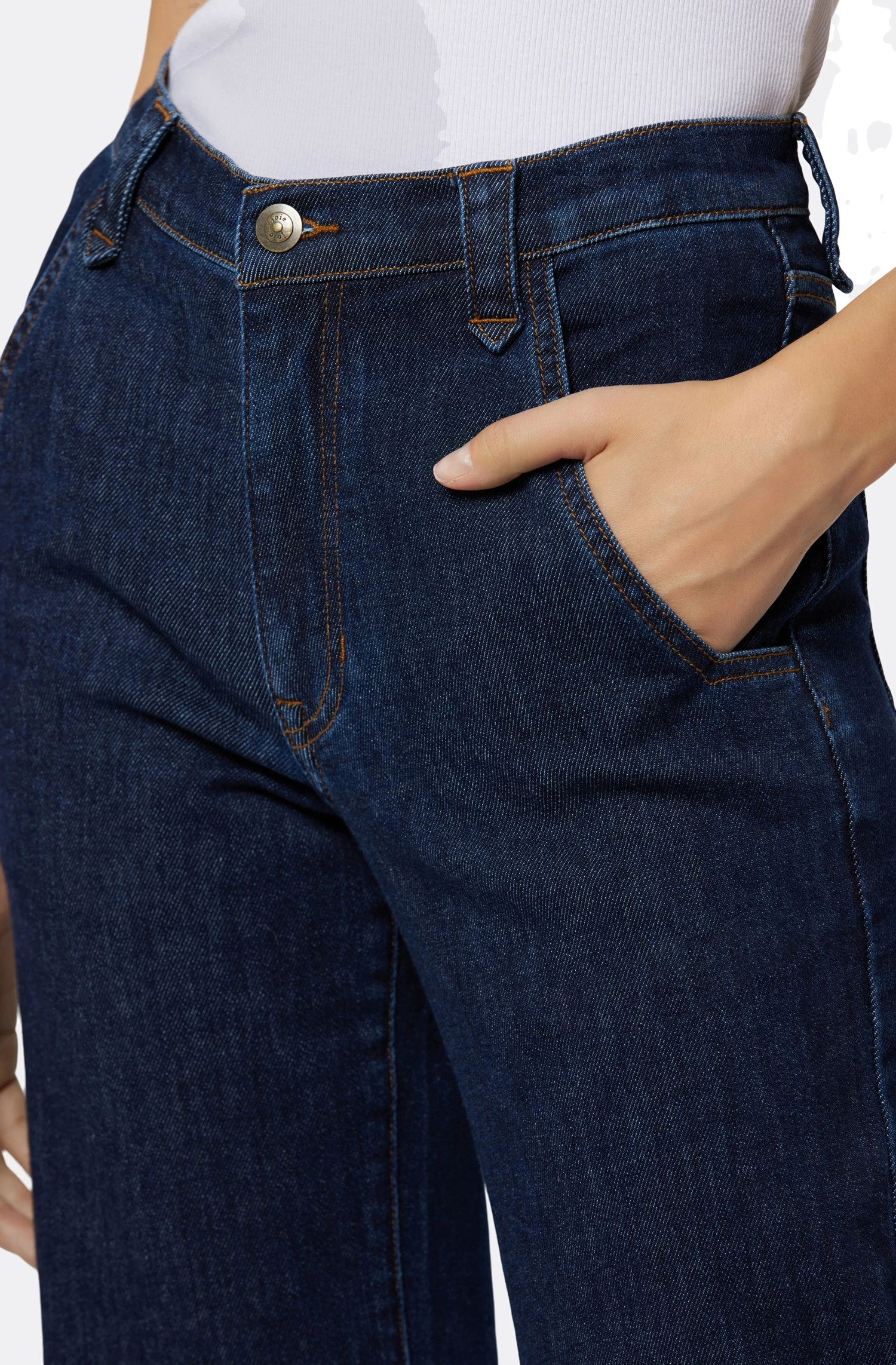 Nothing says everyday, stylish jeans like The Sanna. High waist, wide leg, and a dark wash; this denim design can look great with everything from a basic tee, to a silk blouse.