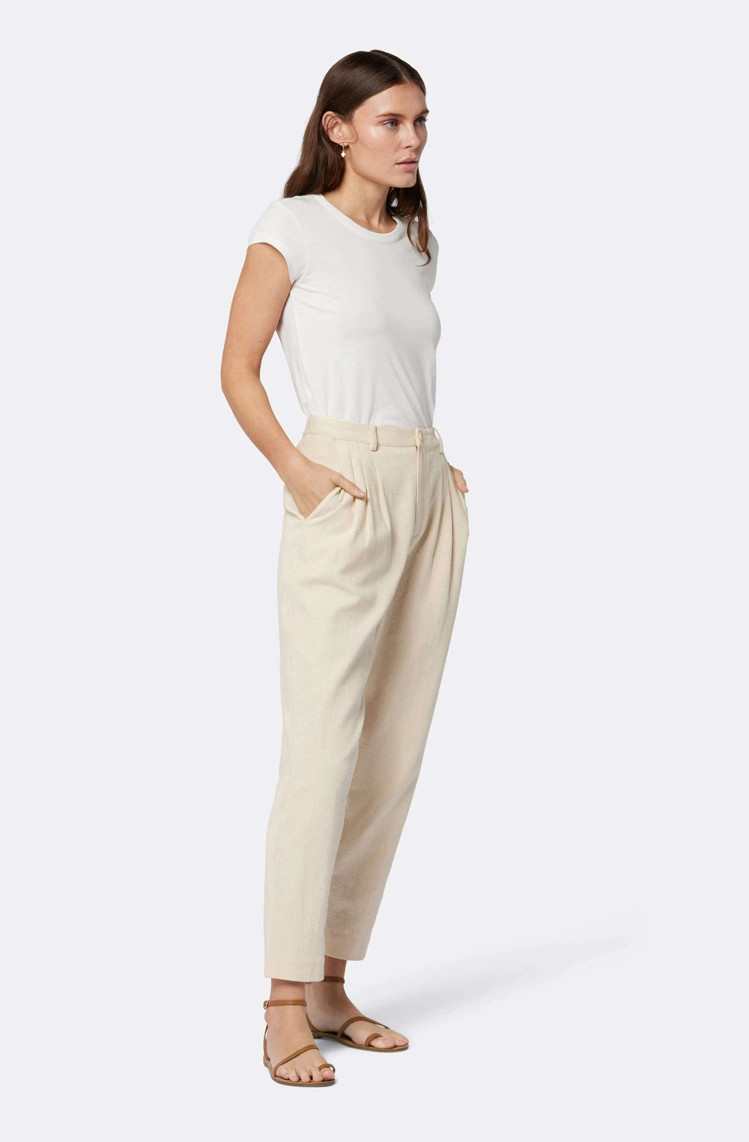 The Tessa are easily your go-to cotton pants this season for when you need to wear something simple yet stylish. These pants can go anywhere with you as they flatter your body, sitting on the natural waist with front pleats, making you feel comfortable and relaxed.
